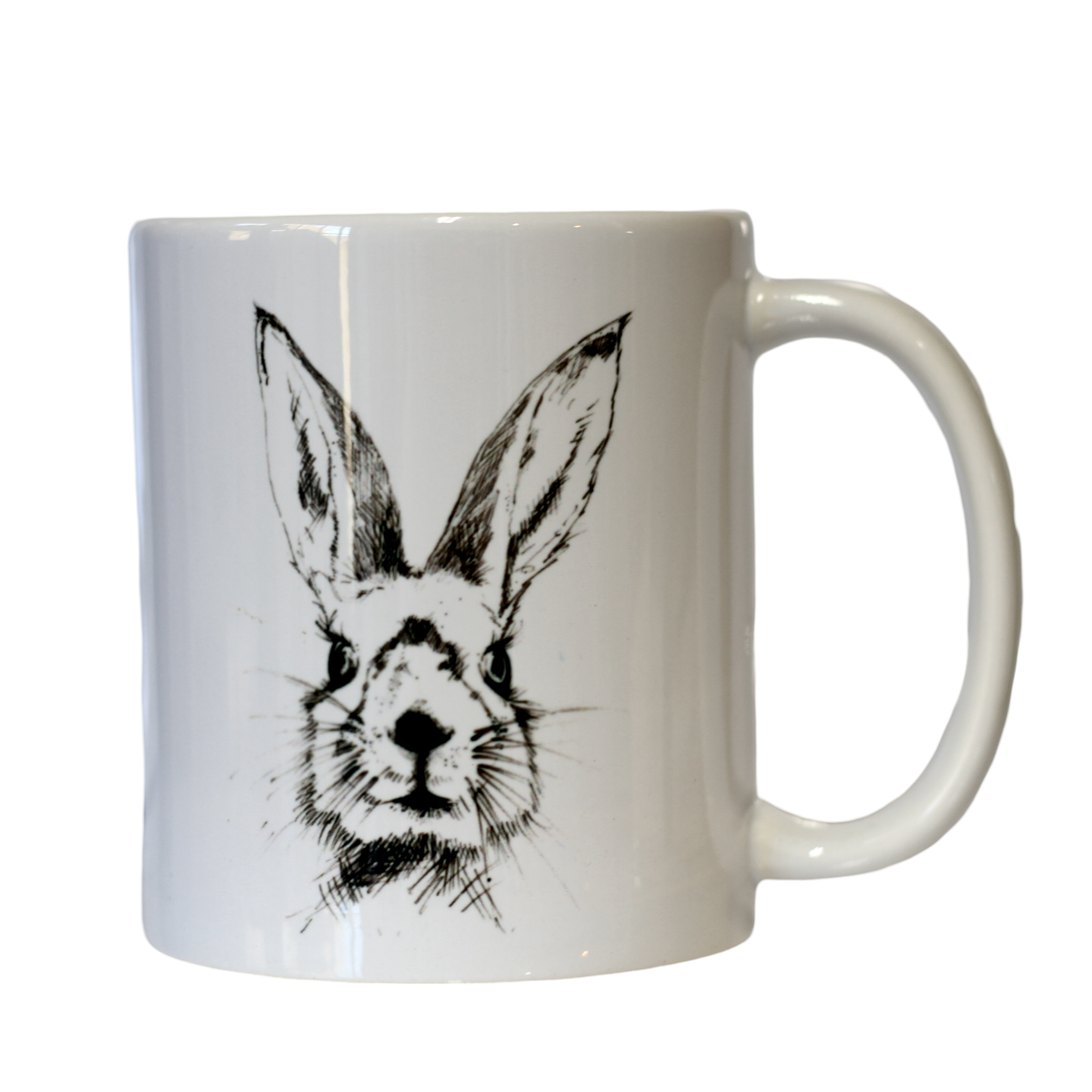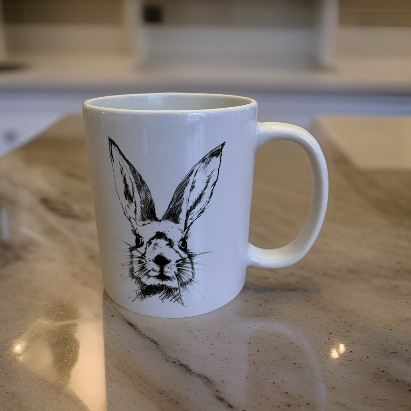 Pen and ink of a bunny rabbit on a mug